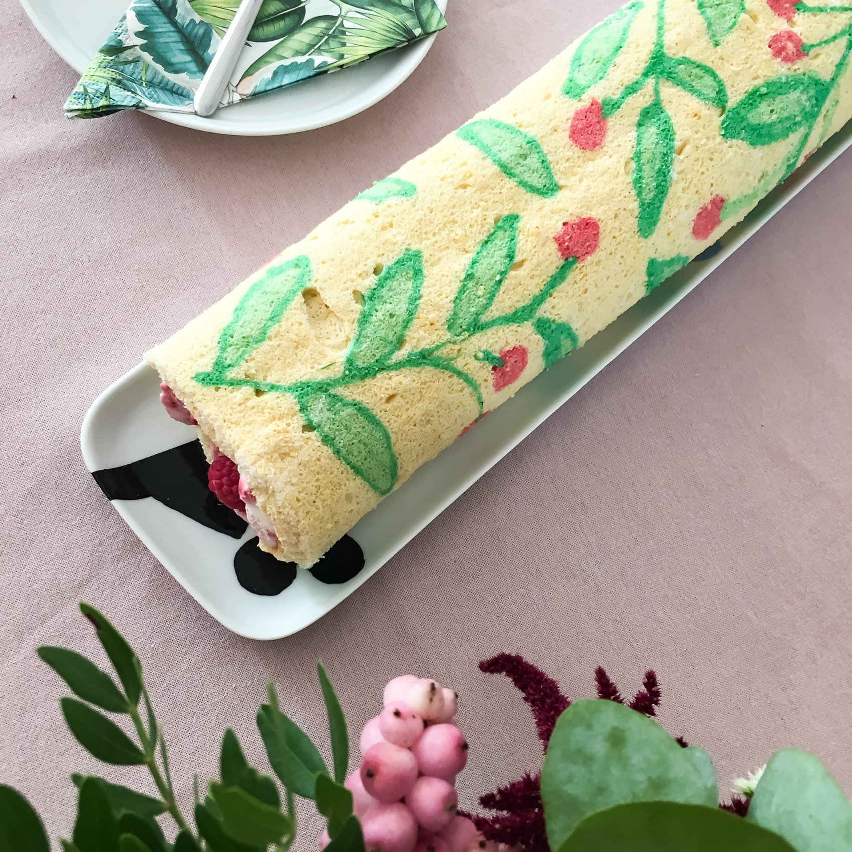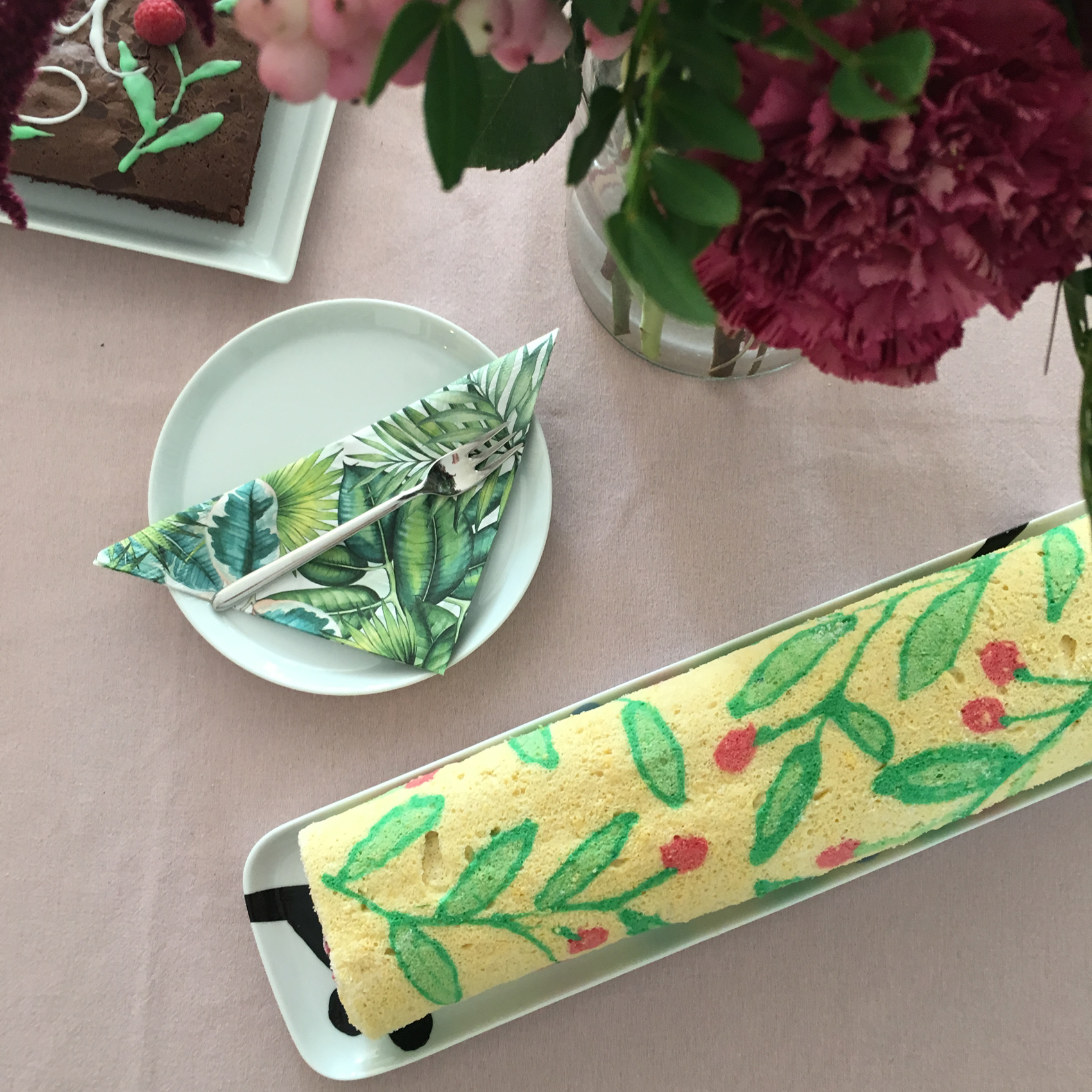 So bin ich dazu übergegangen mit dem Design der Rolle zu spielen. Ob einfach nur mit Sahne und Früchten dekoriert oder wie hier die Rolle selber verziert wird. Bei Back-Deko kann man sich herrlich austoben!