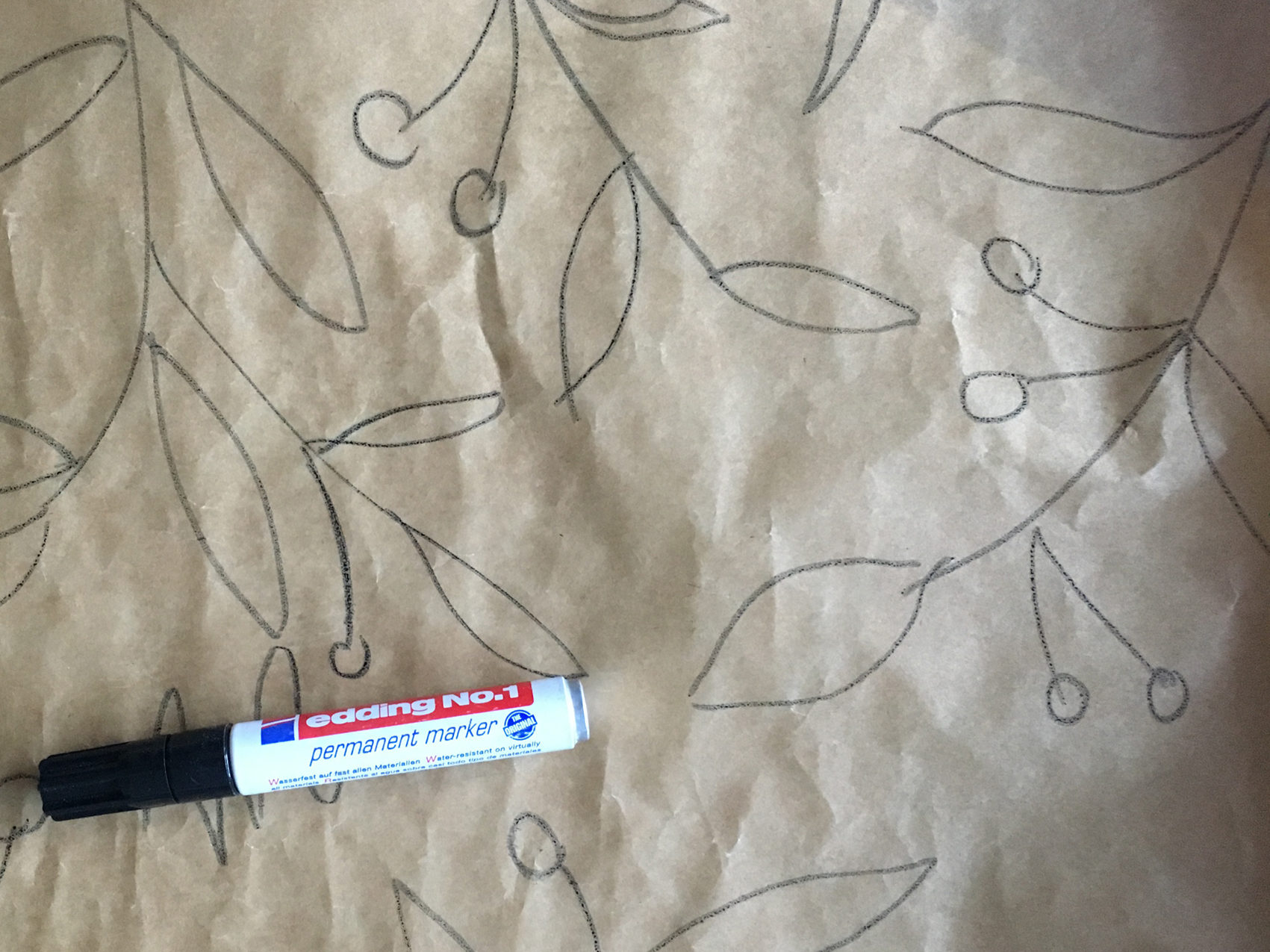 - Ranken auf Backpapier zeichnen und dieses umdrehen