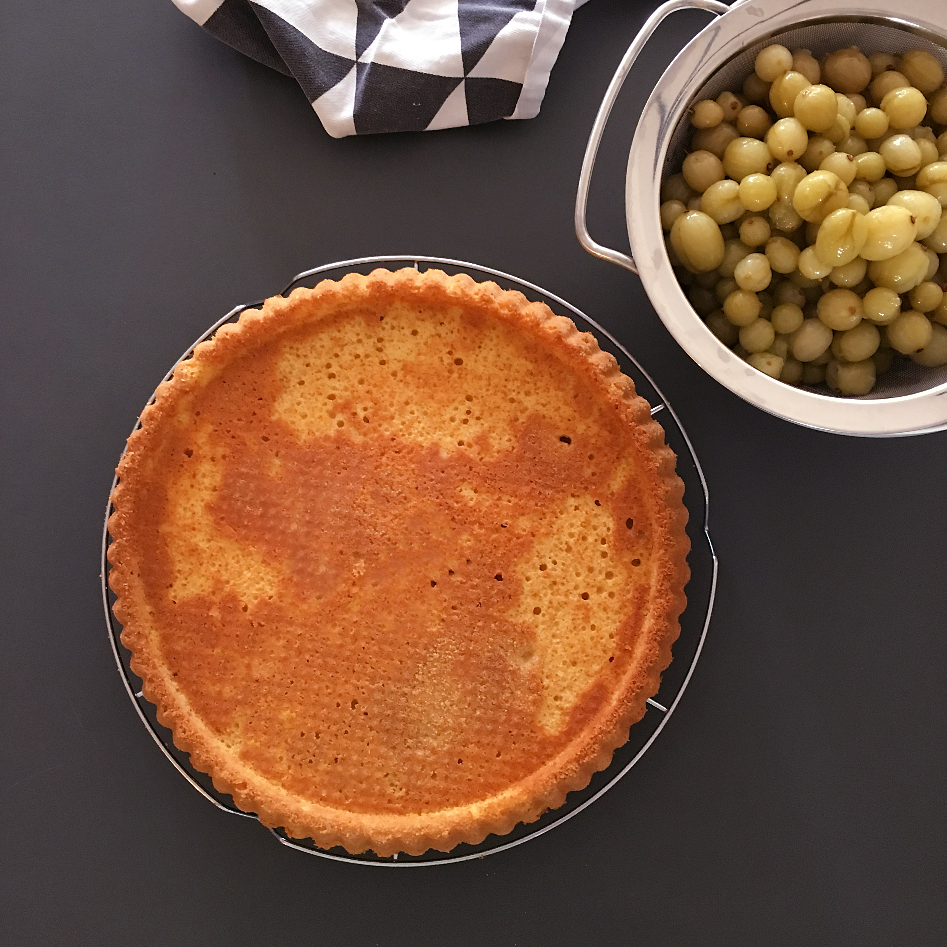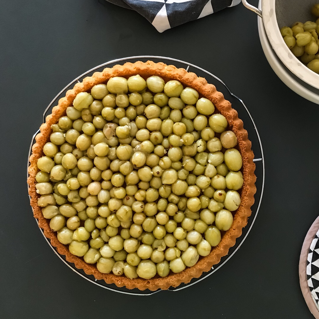 - Tortenguss nach Anleitung zubereiten über Stachelbeeren geben