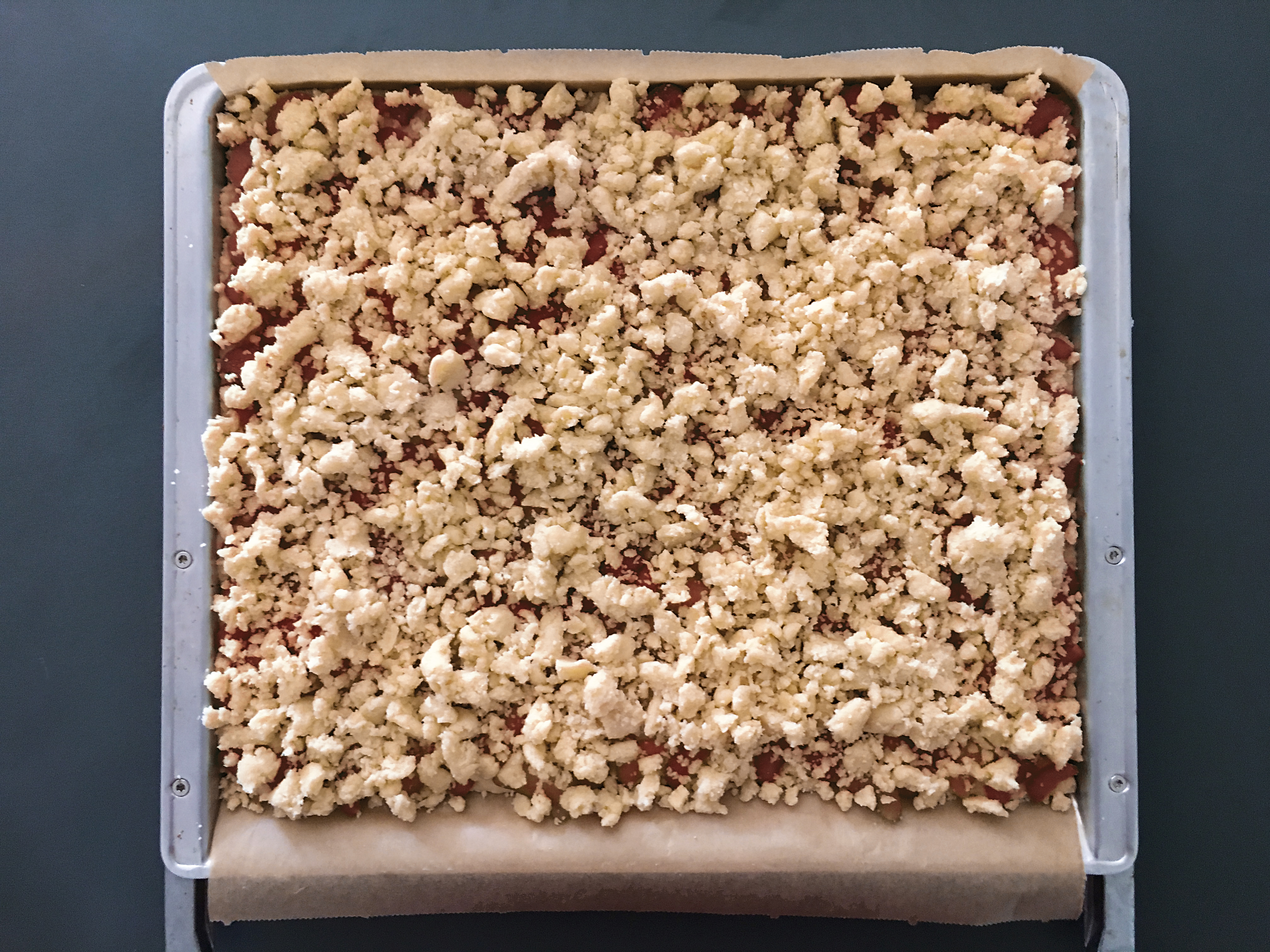 - und die Streusel auf den Kuchen bröseln