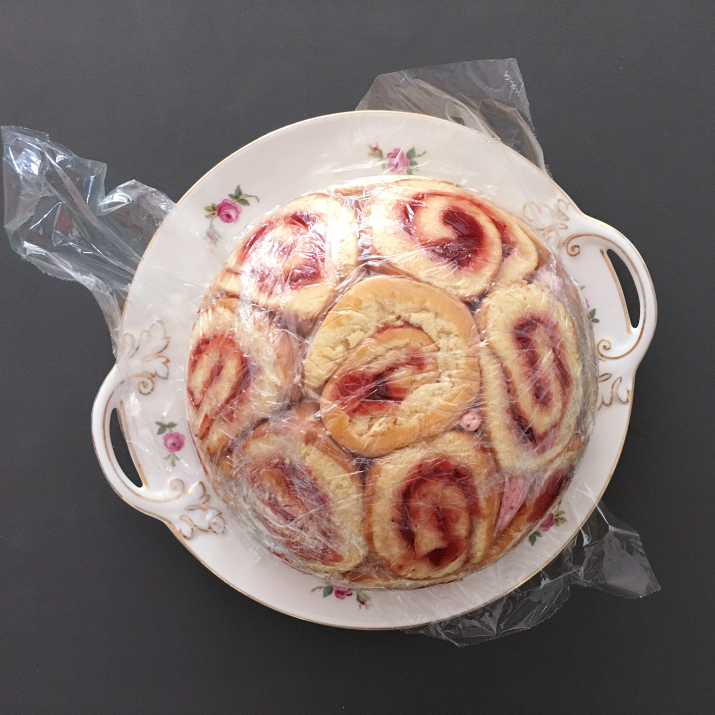 - kuppelförmige Schüssel mit Frischhaltefolie auskleiden