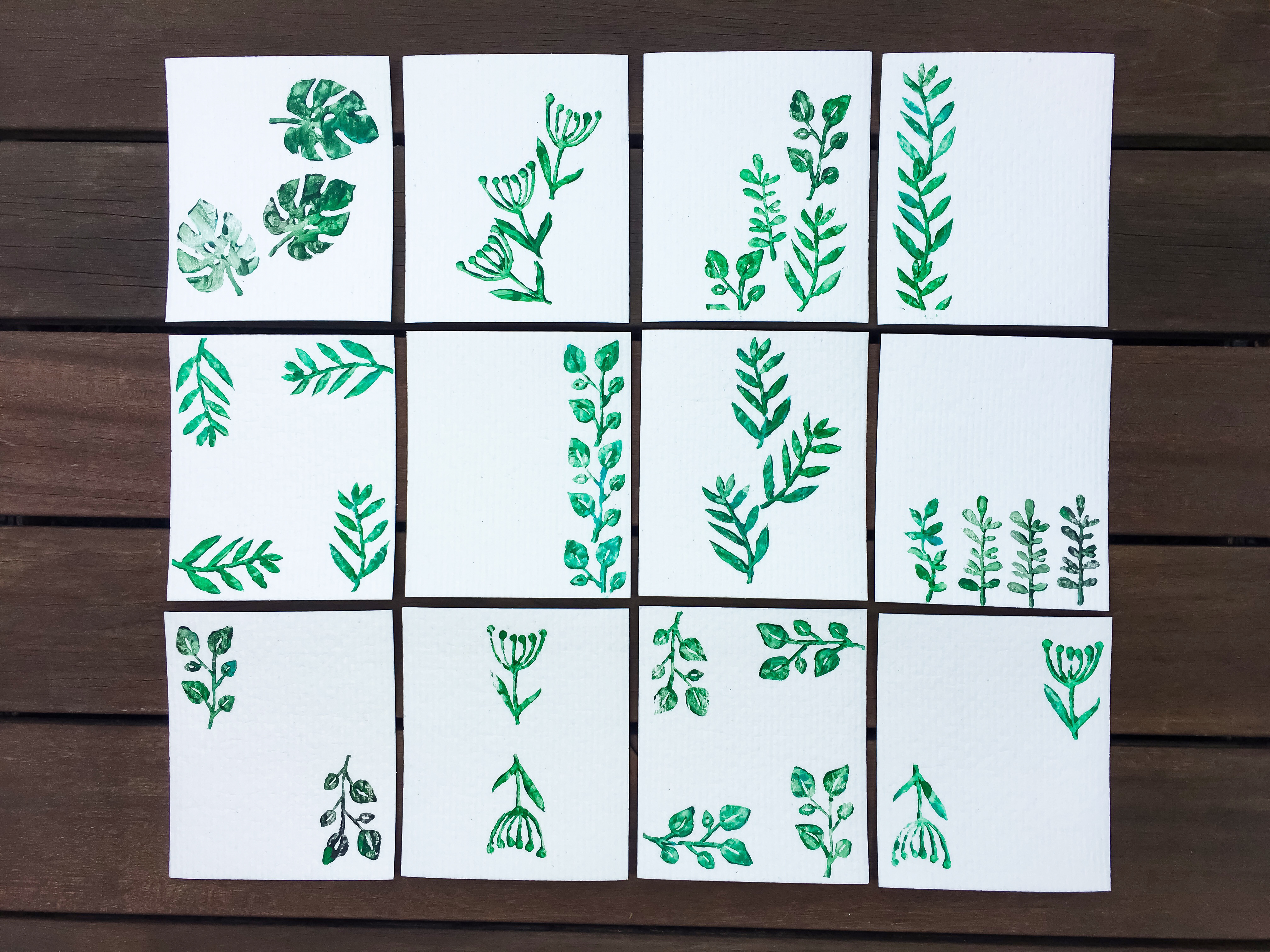 - nach dem Trocknen Schwammtücher einmal bügeln um die Farbe zu fixieren