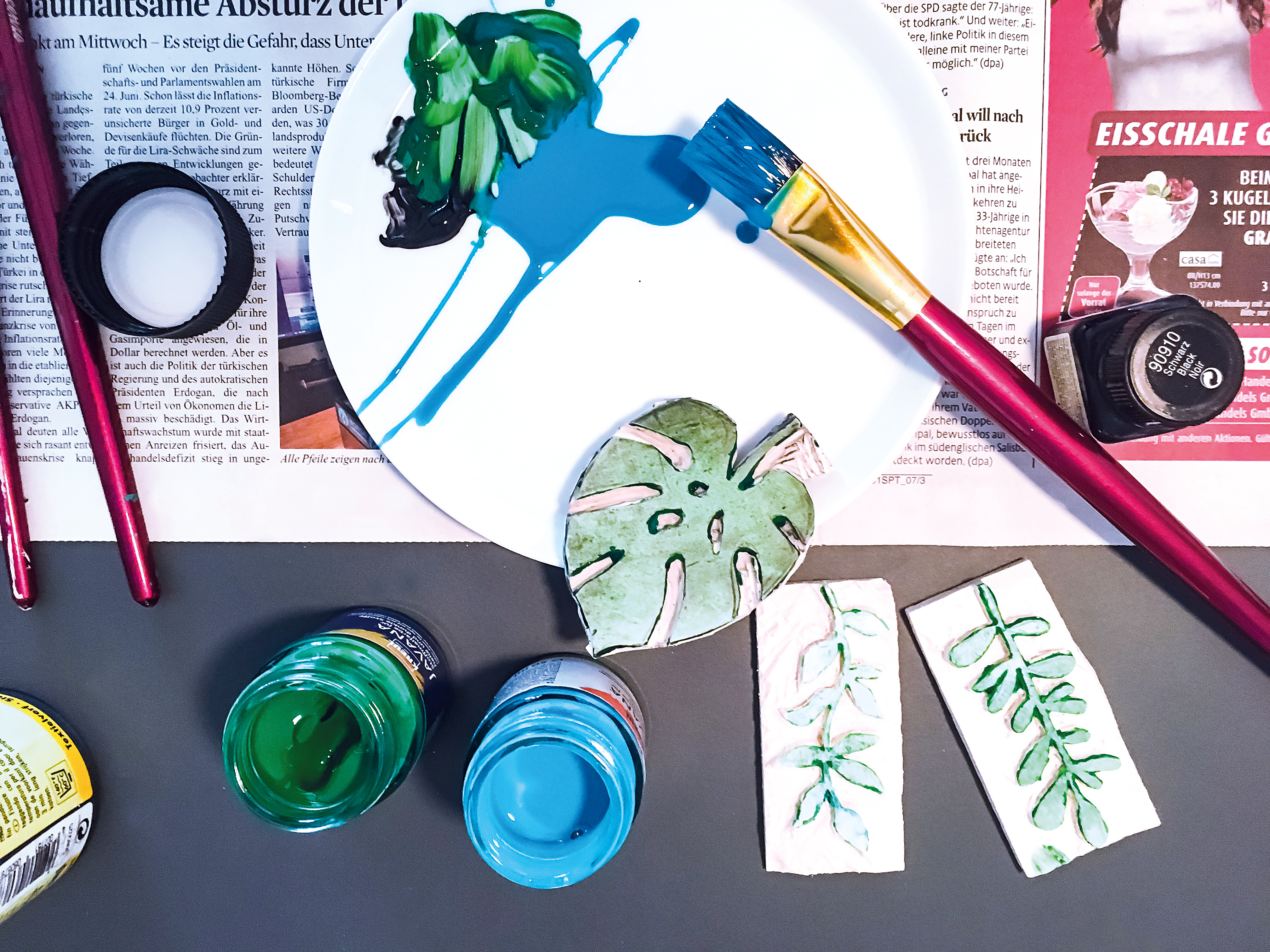 - Farbe auf den Stempel auftragen und loslegen.