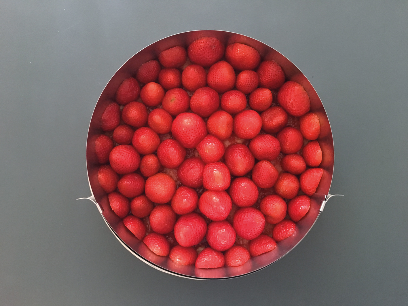 - Erdbeeren für den Rand halbieren und am Rand anlegen
