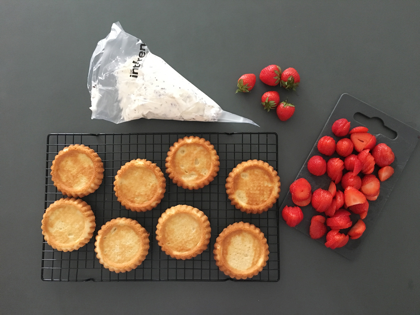 - in Spritzbeutel füllen und auf Tartelettes spritzen