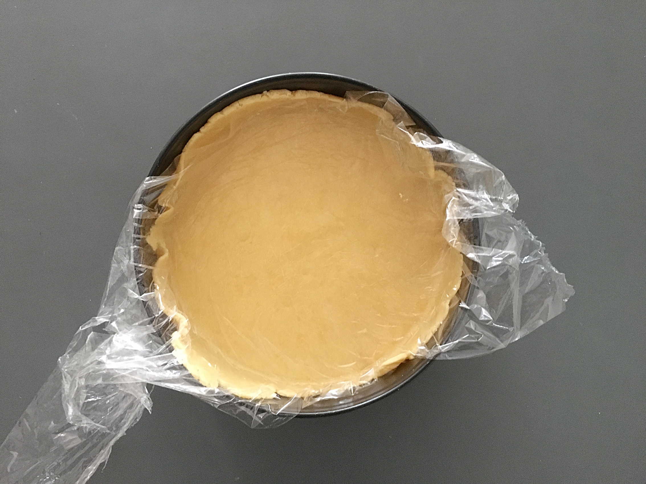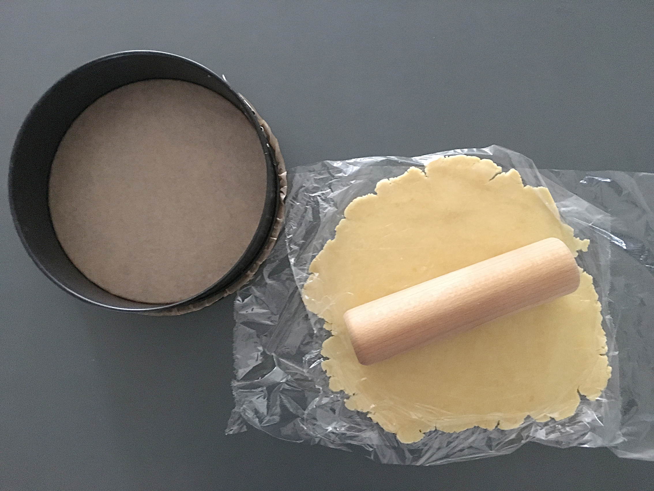 - den Teig ausrollen, ich mache das immer zwischen Frischhaltefolie, da klebt nichts