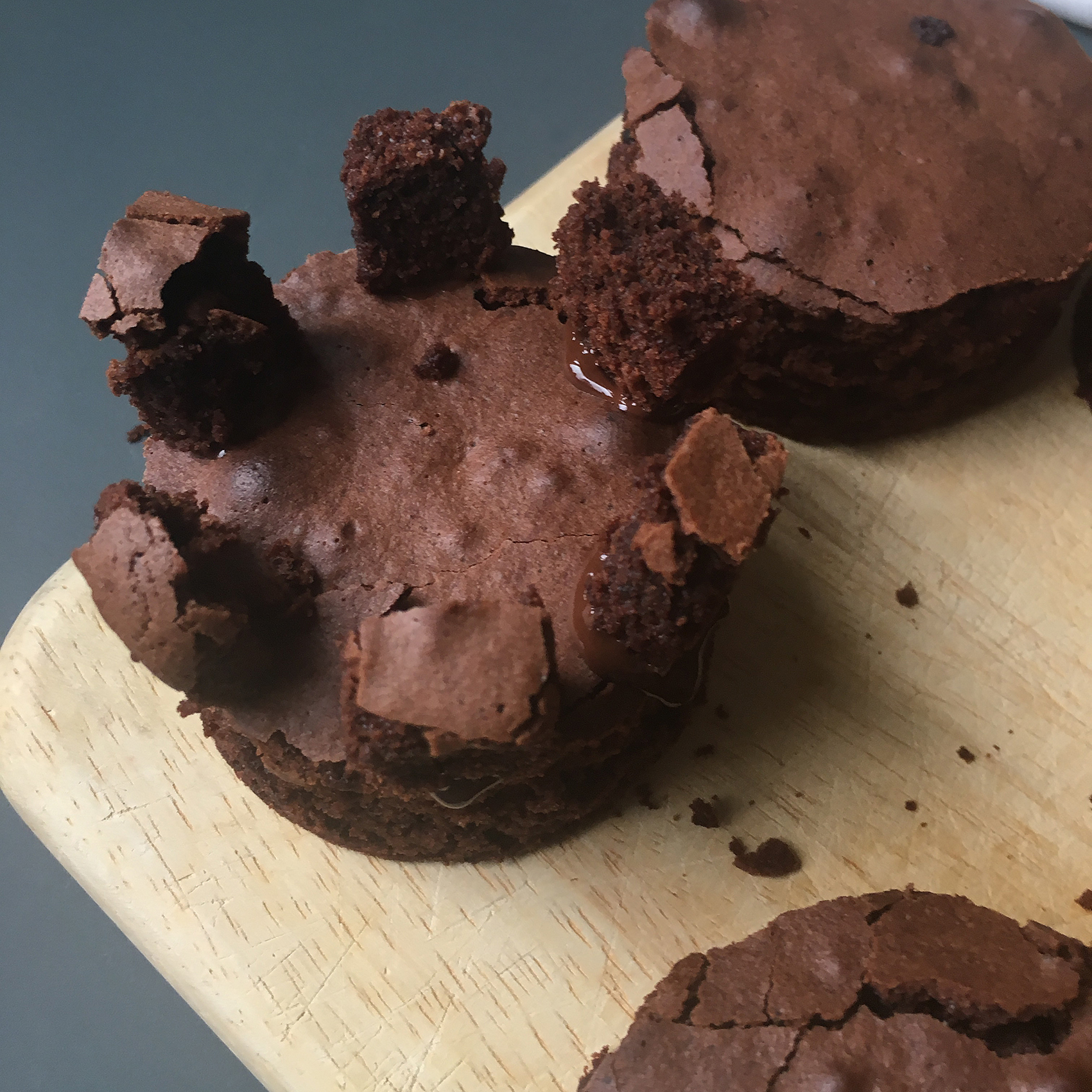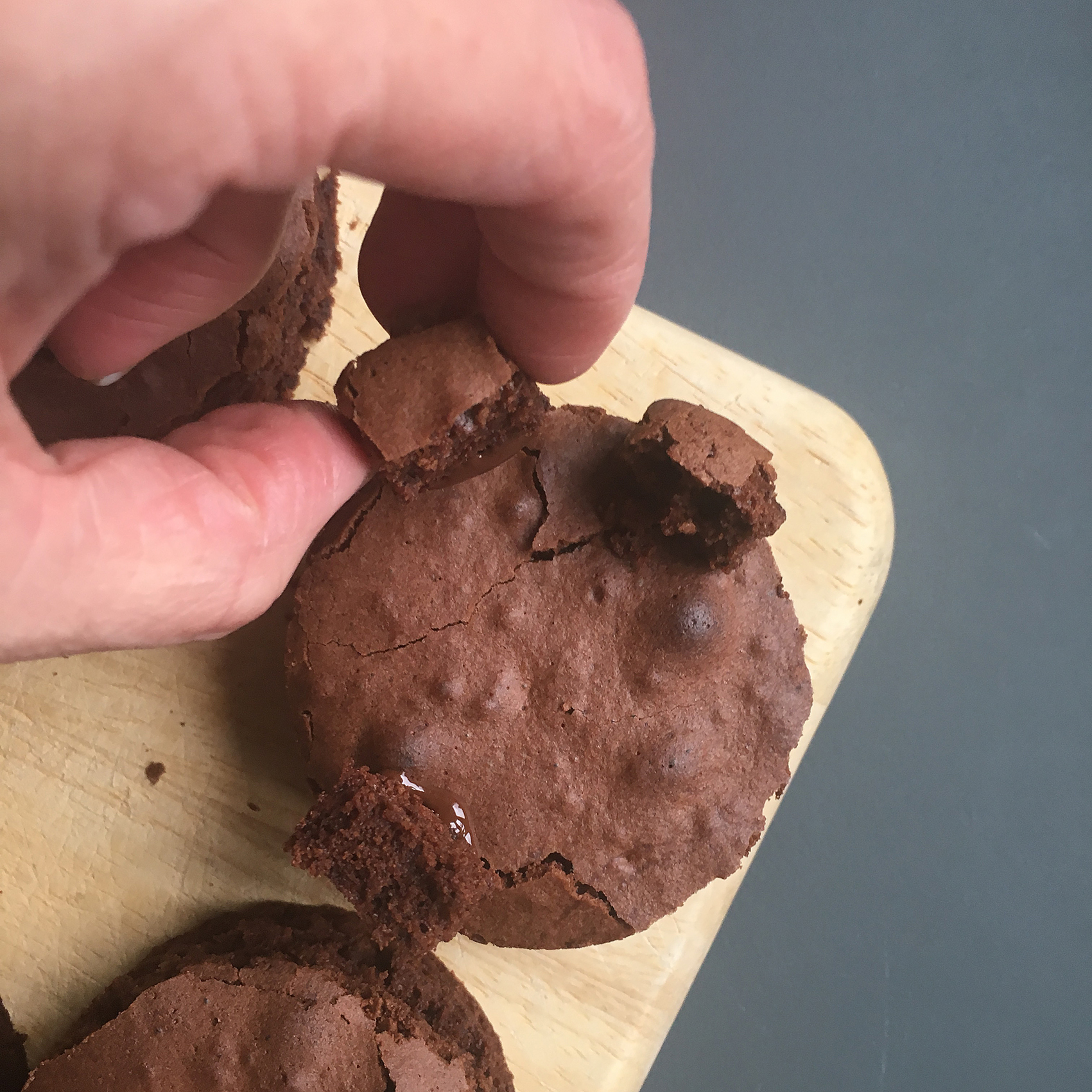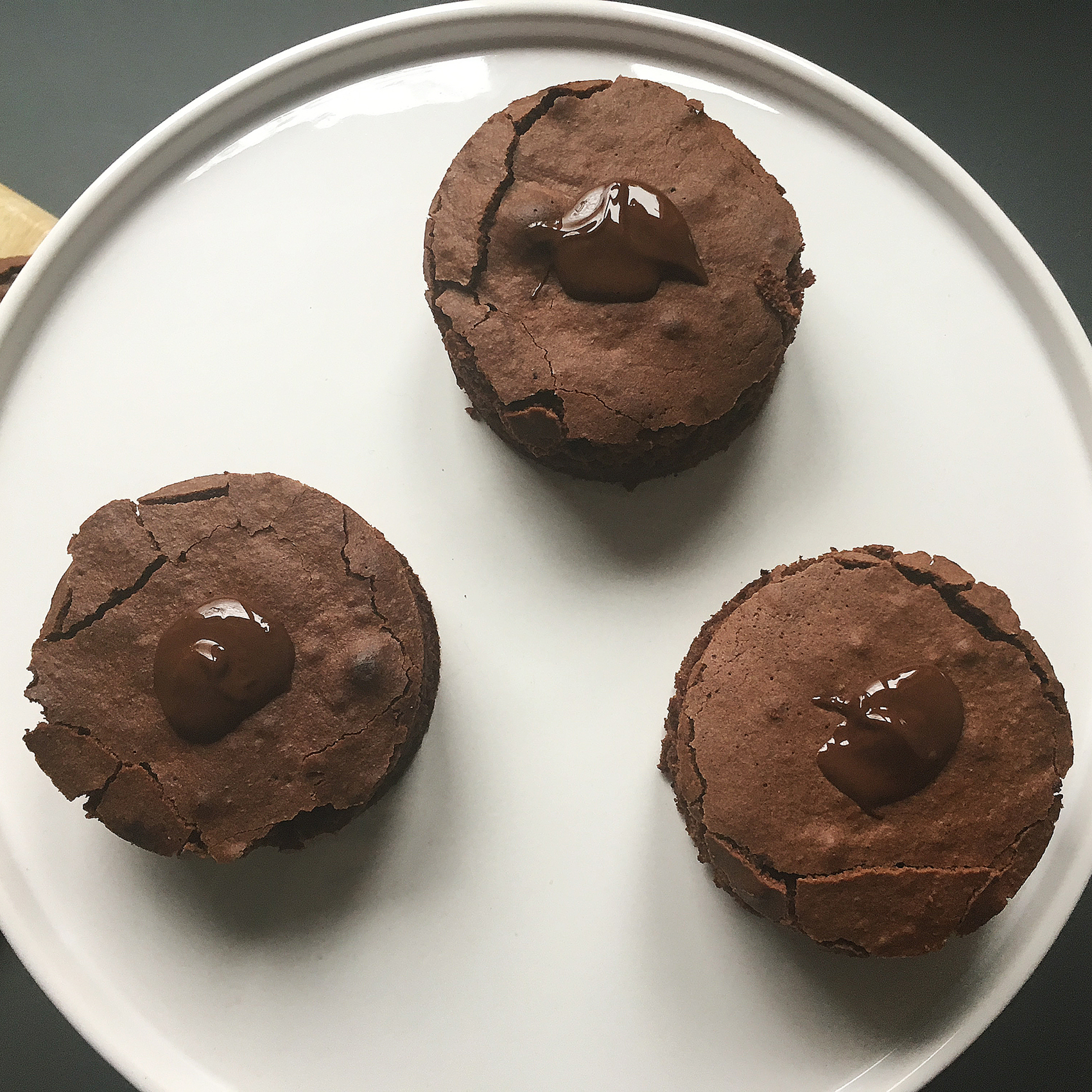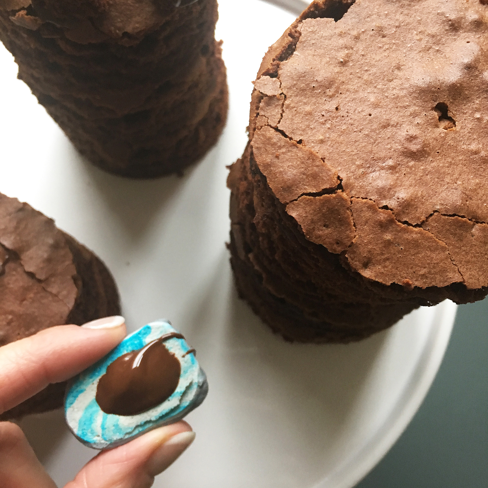 - runde Brownies mit flüssiger Kuvertüre verkleben