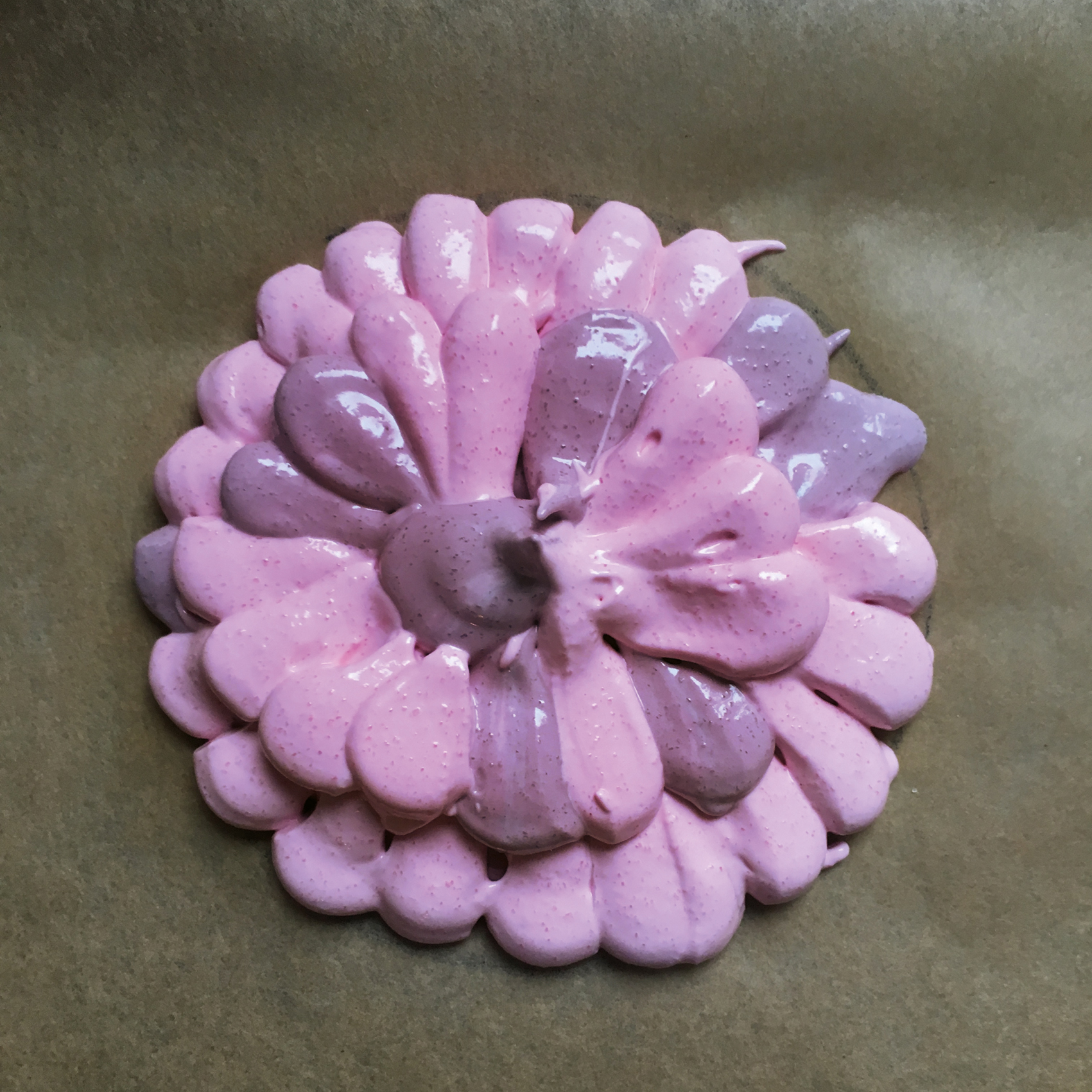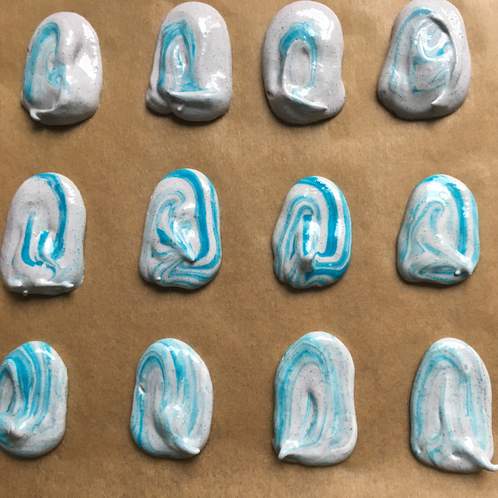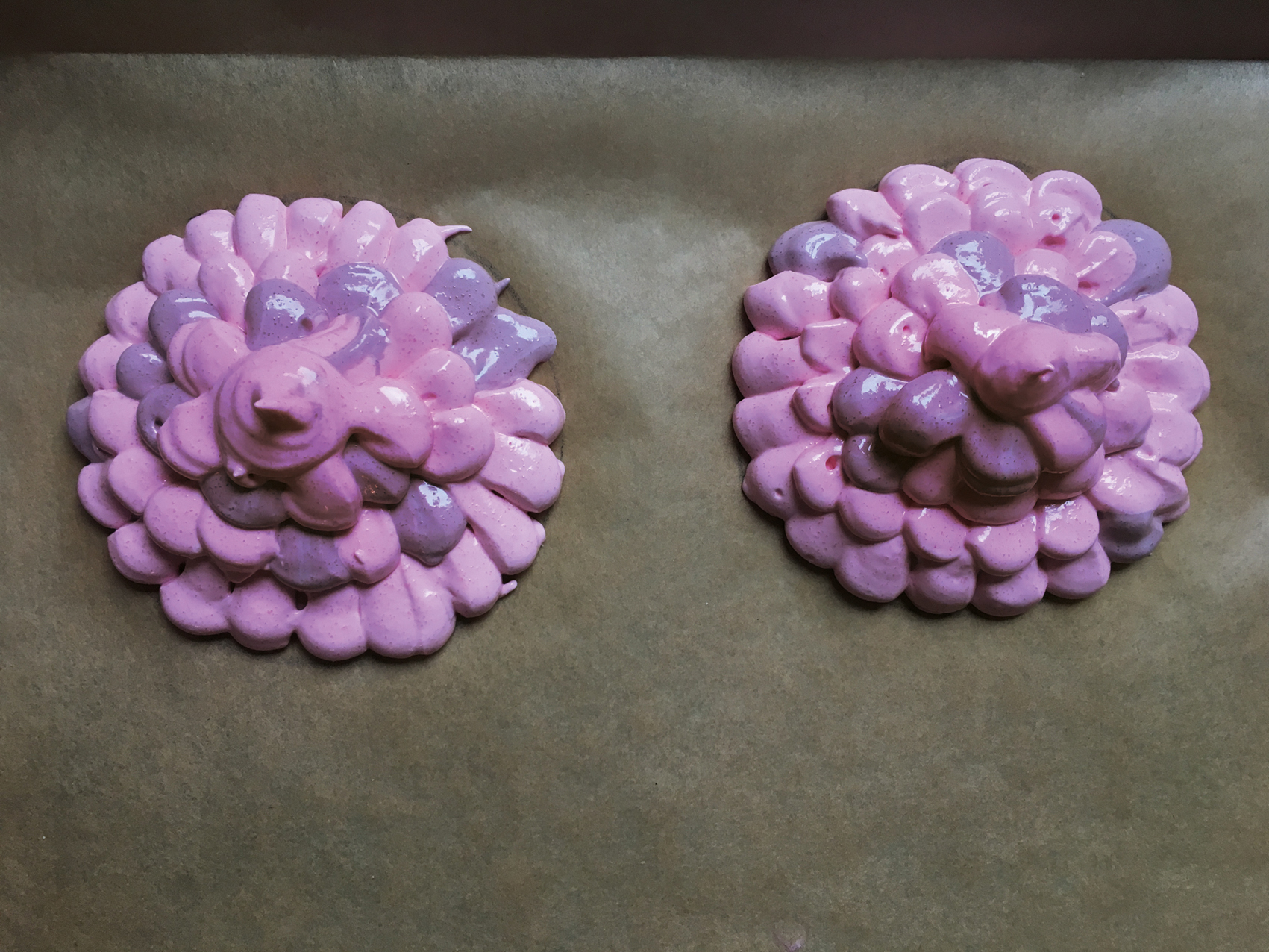 - Baiser teilen und mit Speisepaste einfärben