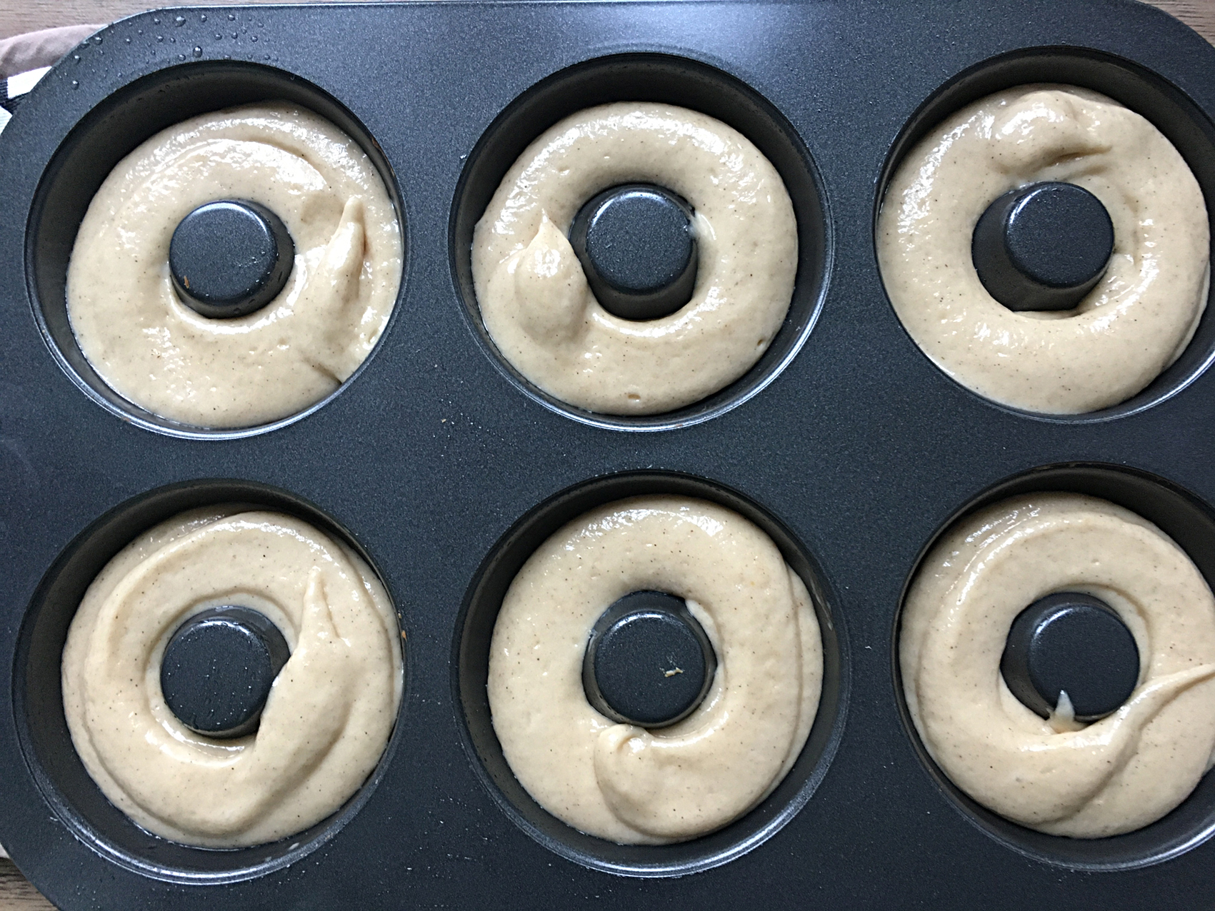 - in Spritzbeutel füllen und in gefettetet Donutform spritzen