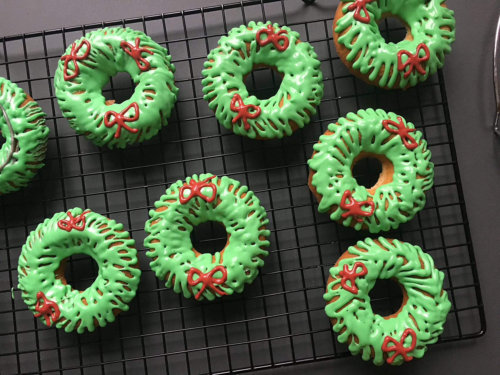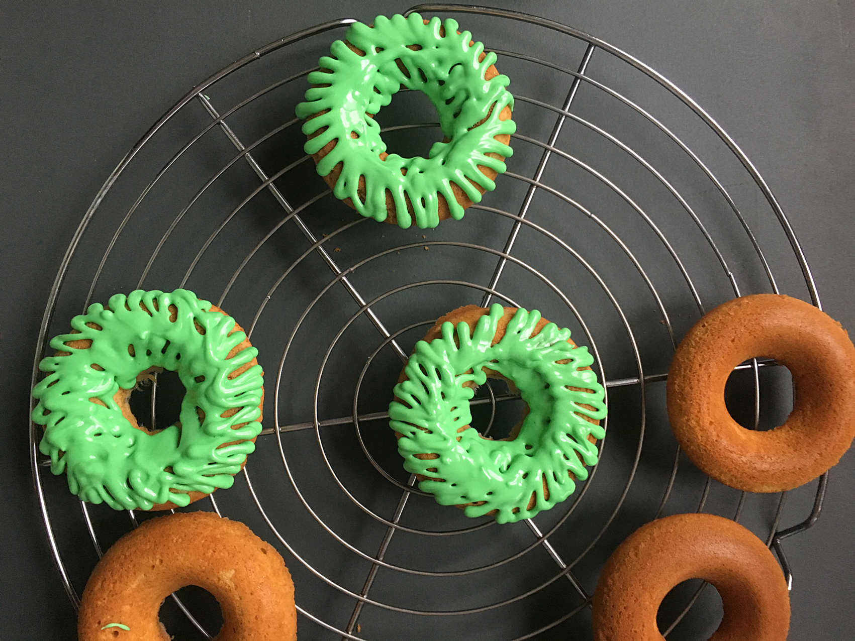 - grüne „Nadeln“ auf den Donut spritzen