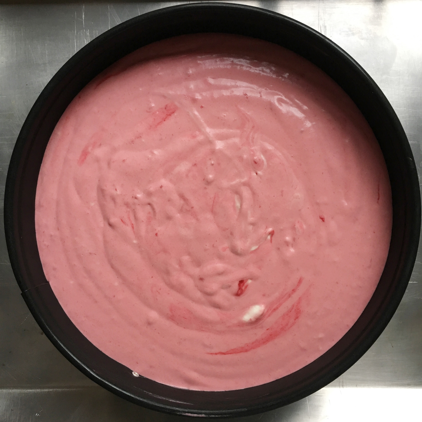 - zum Schluss weiße Masse auf den Himbeerbelag verteilen