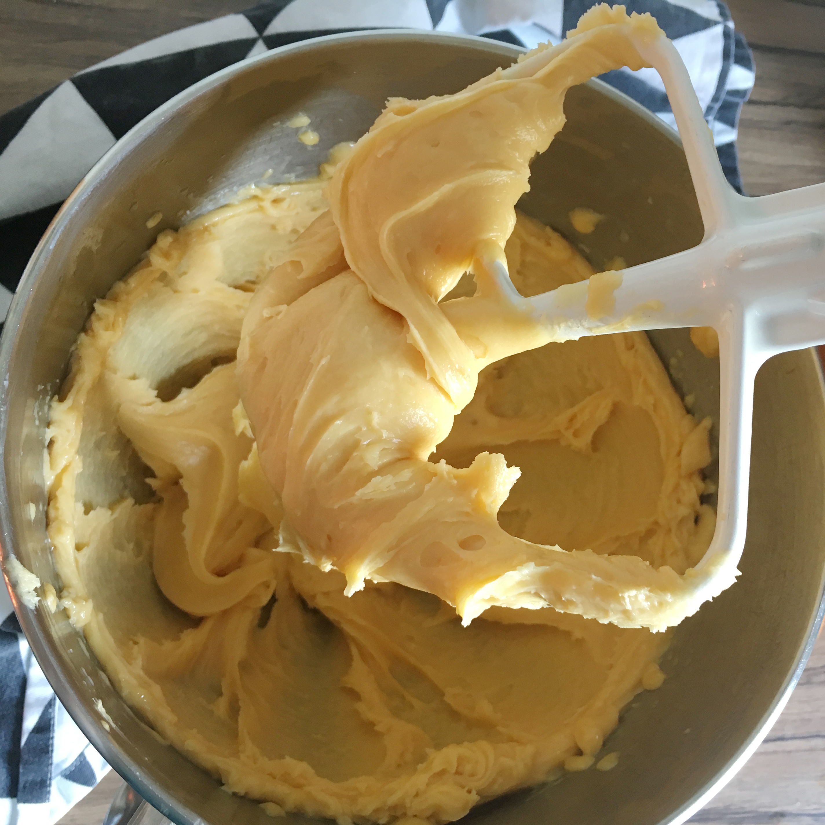 - nach und nach die Eier dazugeben, aber immer erst das Ei komplett unterrühren