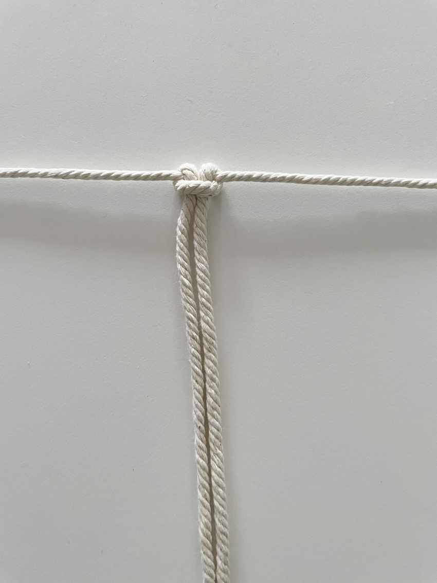 - der äußere linke Faden ist hier der Grundfaden, der mit den Knoten umwickelt wird