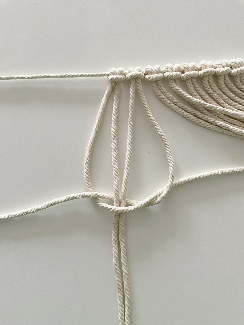 - die letzten Knoten knüpfen, es bleiben auch rechts zwei Fäden übrig