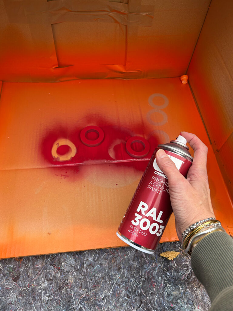 - farbig ansprühen und gut trocknen lassen