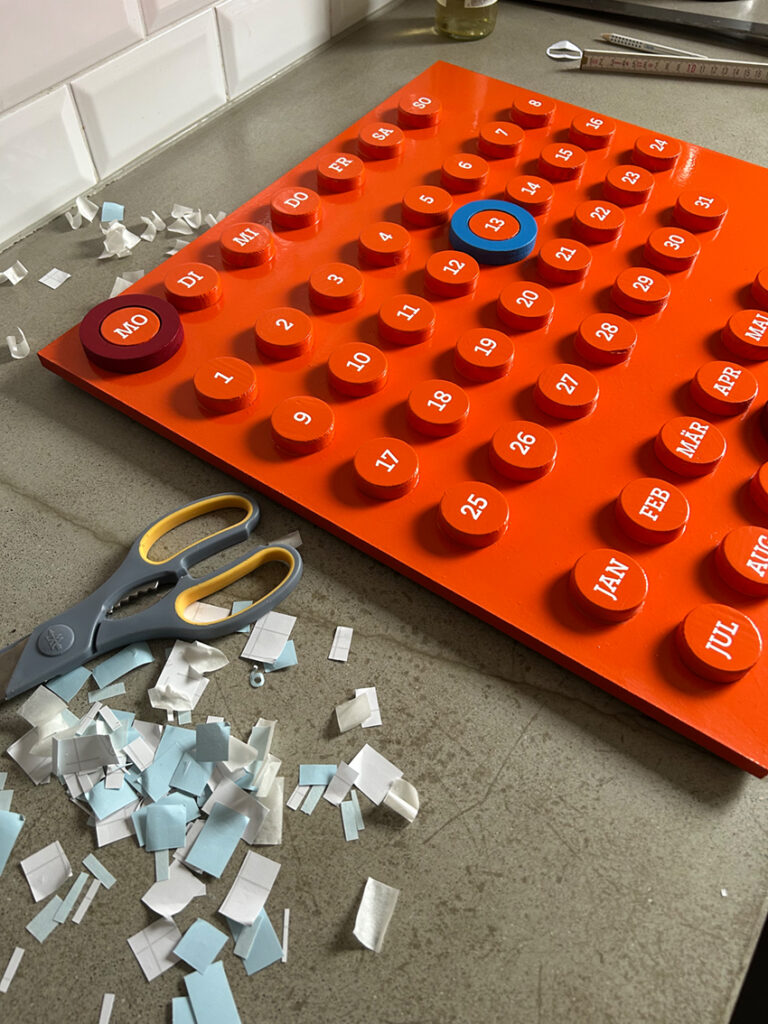 Dieses Kalender-DIY bleibt nun für immer und ewig. Ich hätte den ewigen Kalender natürlich auch kaufen können, aber das ist ja bei den meisten DIYs so. Aber wo bliebe da der Spaß?! Ich habe mich bewußt für einen glänzenden Lack entschieden, damit der Look ähnlich dem Original aus Kunststoff ist. Allerdings kann ich mir das Ganze in Matt Kreidefarbe * auch echt super gut vorstellen. Die Farbe wäre sicherlich auch dankbarer, was Maserungen angeht, aber ich bin trotzdem sehr zufrieden. Was meint ihr?